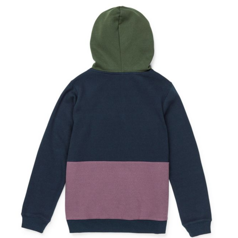 De Volcom Kids Forzee Pullover Hoodie - Navy is een stijlvolle en comfortabele keuze voor kinderen. Met een opvallend colourblock-design en een klassieke kangoeroezak aan de voorkant is deze hoodie perfect voor elke dag. De mix van katoen en polyester zorgt voor een zachte, duurzame stof die prettig aanvoelt en lang meegaat. Zonder prints biedt deze hoodie een minimalistische, maar speelse look die gemakkelijk te combineren is met andere outfits.